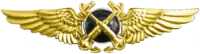 A unique obsolete badge situation occurred with General of the Air Force Henry H. Arnold, who in 1913 was among the 24 Army pilots to receive the first Military Aviator Badge, an eagle bearing Signal Corps flags suspended from a bar.[1] Replaced in 1917 by the more conventional "wings" embroidered design (authorized as an oxidized silver badge in 1921), Arnold displayed both types on his uniform throughout his career. The original Military Aviator Badge design can be seen in pictures of him in uniform.