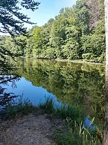 The river is 24.7 miles (39.8 km) long,[2] and its watershed covers about 590 square miles (1,528 km2). It is formed by the confluence of Broad Run and Cedar Run in Prince William County; Bull Run, which forms Prince William County's boundary with Loudoun and the northerly part of Fairfax counties, enters it east-southeast of Manassas, as the Occoquan turns to the southeast. It reaches the Potomac at Belmont Bay. The Occoquan River is part of the Chesapeake Bay watershed. The name Occoquan is derived from a Doeg Algonquian word translated as "at the end of the water".[3]