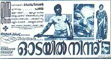 Odayil Ninnu (transl. From the gutter) is a 1965 Indian Malayalam-language drama film directed by K. S. Sethumadhavan and written by P. Kesavadev based on his novel of the same name.[1] The film deals with the life and struggles of a proud and hardworking rickshaw puller, Pappu.[2] It stars Sathyan, Prem Nazir, K. R. Vijaya and Kaviyoor Ponnamma. Master Dasarath plays the young Pappu. Suresh Gopi made his acting debut with the film, who was then six years old. He appeared as the feudal lord's timid son, who also becomes the root cause for Pappu running away from home.