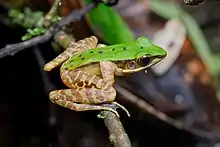 Odorrana chloronota , commonly known as the chloronate huia frog or copper-cheeked frog, is a species of frog in the family Ranidae that is found in Cambodia, China, India, Laos, Myanmar, Thailand, Vietnam, and possibly Bangladesh and Nepal.