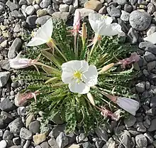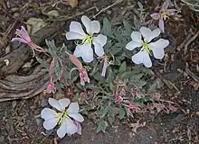 Oenothera caespitosa, known commonly as tufted evening primrose, desert evening primrose, rock-rose evening primrose, or fragrant evening primrose, is a perennial plant of the genus Oenothera native to much of western and central North America, in habitats such as talus slopes and sandy plains.[1] It is normally night-blooming.[2]