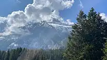The headwalls of the Kandertal landslide are still unstable.[23] In summer 2018 a volume of 0.02 cubic kilometres (0.0048 cu mi) in the "Bim Spitze Stei" area[35] between the Kandertal and Oeschinensee landslide detachment areas became noticeably unstable.[33] Geophysical analyses have shown that there are a number of rock masses in motion, some of them containing warm permafrost, with most motion occurring in summer. As of 2021, the speed of the motion has increased with every year.[36]