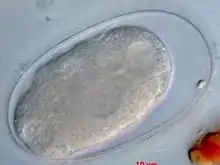 Eggs are ovular in shape and range from 50 to 100 micrometres in size; they closely resemble those of hookworms, which renders diagnosis via stool analysis useless in areas co-infected with both Oesophagostomum and hookworm.[9]