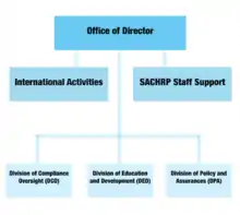 As a leader in the DHHS, the Office of the Director oversees all functions of the OHRP and works closely with DHHS officials including the Secretary of Health and Human Services and the Assistant Secretary for Health to ensure that human research policies, plans, and procedures meet ethical standards. The committees that fall under the Office of the Director include International Activities and the Secretary's Advisory Committee on Human Research Protections (SACHRP).