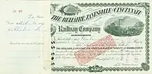 Share of the Bellaire, Zanesville and Cincinnati Railway Company, issued 31. March 1890