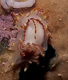 - ↑ Gosliner, T.M. 1987. Nudibranchs of Southern Africa ISBN 0-930118-13-8