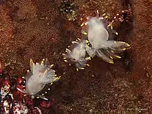 This Okenia has a broad body and seven to twelve pairs of lateral papillae.