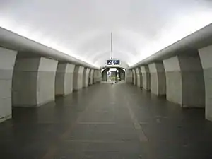 Oktyabrskaya (Russian: Октябрьская. English: October [station]) is a Moscow Metro station in the Yakimanka District, Central Administrative Okrug, Moscow. It is on the Kaluzhsko–Rizhskaya line, between Shabolovskaya and Tretyakovskaya stations. Oktyabrskaya opened on 13 October 1962 and was originally the northern terminus of the Kaluzhskaya line before the latter extended northwards in 1970.
