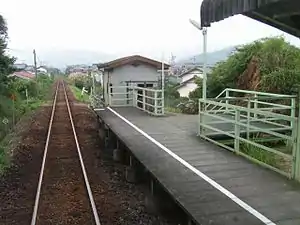 The station has a single side platform. The station is unattended.