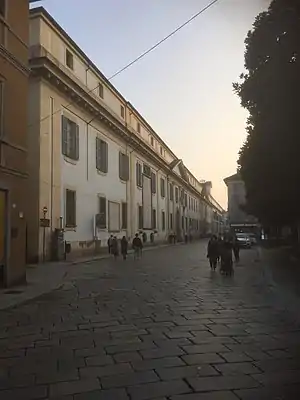 Between 1819 and 1850 the complex underwent a new expansion, in fact, with the acquisition and subsequent demolition, of the southern part of the former monastery of the Leano and the respective church, two other courtyards with porticoes were built on a project by Giuseppe Marchesi, where numerous epigraphs and stone finds from the Roman age were placed walled up under the arcades, while, between 1822 and 1823 the great staircase was built.[7][8]