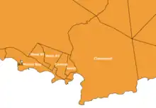 Old Road, officially known as Old Road Town, is a town located on a roadstead in the parish of Saint Mary, Antigua and Barbuda.[2] It is overlooked by Boggy Peak, which lies to its northwest. Old Road was founded in the 1700s,[3] and in the 1850s was still a tiny settlement of 96, smaller than its neighbour to the west, Urlings.[4] Old Road has since grown to a population of 1,251 in 2011, and is now the tenth largest settlement in the country. Old Road is smaller than Willikies, but is larger than Montclear, Skyline, and Potters Village. Old Road is separated from the rest of Antigua by the Shekerley Mountains. The village is located on Andy Roberts Drive which to the east, merges onto Fig Tree Drive leading to John Hughes, and to the west, continues through Urlings, Crabs Hill, and Johnsons Point before merging onto Valley Road in Ffryes village.