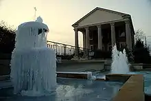 The fountains in front of the Old State Bank frozen in winter 2008.