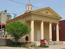 The Old State Bank, also known as the Second State Bank, Vincennes Branch, is a historic bank building located at Vincennes, Knox County, Indiana. It was built in 1838, and is a 2+12-story, Greek Revival style brick building. The building measures 36 feet wide and 48 feet deep. The projecting temple form front facade features four two-story, Doric order columns. The building is topped by a dome with cupola and windows that provide light to the main banking room. The building was restored in 1965.[2]:2