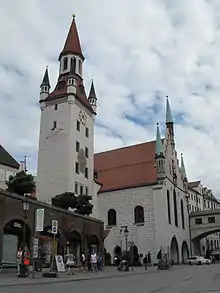 The Old Town Hall (German Altes Rathaus), until 1874 the domicile of the municipality, serves today as a building for representative purposes for the city council in Munich, Bavaria, Germany. The Old Town Hall bounds the central square Marienplatz on its east side.