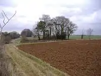 Oldbury-on-the-Hill has been inhabited since prehistoric times, and Nan Tow's Tump, a round barrow beside the A46 road, is a Bronze Age earthwork and archaeological site.[3][4] The tree-grown barrow is about thirty metres in diameter and three metres high.[5][6] The name refers to Nan Tow, said to have been a local witch who was buried upright in the barrow.[7][8][9][10]