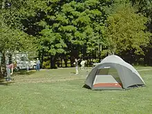 Camping is permitted year round at Ole Bull State Park. There are two camping areas on the banks of Kettle Creek. Some of the sites are sunny and some are shaded. There are 24 electric hookups at one campsite and 21 at the other. All campsites have a level gravel pad for setting up campers. They also feature a fire ring and a picnic table. Modern restrooms, water hydrants and a sanitary dump station are available at Ole Bull State Park.[3]