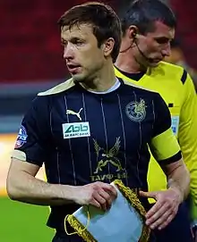 In October 2009, he was called up to the Russia national football team for the 2010 FIFA World Cup qualifier against Azerbaijan. He was called up again in August 2015 for the UEFA Euro 2016 qualifiers against Sweden and against Liechtenstein.[1] He made his national team debut, at the age of 34, in the game against Sweden on 5 September 2015. He scored his first goal for the Russia national football team on 12 October 2015 in a game against Montenegro