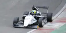 Along with his duties in Formula 4, Bearman raced in the BRDC British Formula 3 Championship with Fortec Motorsports, partnering Roberto Faria and Mikkel Grundtvig.[17] He started his campaign off strongly, scoring two second-place finishes in the first two races at Brands Hatch.[18] Having skipped the following three rounds in order to concentrate on his F4 campaign, Bearman came back at the Snetterton Circuit, where he would win the opening race,[19] and he would follow that up by qualifying on pole for the first race at Silverstone.[20] However, his chances of victory were slashed after losing his front left wheel on the second lap, which meant that a second place in Race 2 would be the highest finish of his weekend.