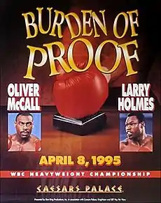 Oliver McCall vs. Larry Holmes, billed as "Burden of Proof", was a professional boxing match contested on April 8, 1995 for the WBC Heavyweight Championship.[1] The undercard included world championship bouts in four other categories.