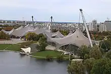 The Olympia Schwimmhalle is an aquatics centre located in the Olympiapark in Munich, Germany. It hosted the swimming, diving, water polo, and the swimming part of the modern pentathlon events at the 1972 Summer Olympics. At the Olympics, the stadium had a 9000-seat temporary capacity which was reduced to 1,500 soon afterwards. During the 1972 Summer Olympics, in the 29 Olympic swimming events, all the Olympic Records were broken and 20 new World Records were achieved.