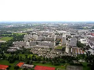 The Olympic Village (German: "Olympisches Dorf") was constructed for the 1972 Summer Olympics in Munich, Germany and was used to house the athletes during the games. The Munich massacre took place in one of its apartment blocks, Connollystraße 31; the street was named for an Irish-American participant in the 1896 Olympics.[1] The Olympic Village is in the north part of the Olympiapark.