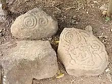 Some petroglyphs were also found in the island made from 300 AD. Many of the petroglyphs include spirals. Others are used to depict the head of anthropomorphic figures, some of which resemble Mesoamerican depictions of Nagual, suggesting the shared practice of Tonal spirituality.[1]