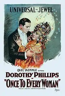 Once to Every Woman is a 1920 American silent drama film starring Dorothy Phillips, directed by Allen Holubar and released by Universal Pictures under the name Jewel Production. Supporting actors include Margaret Mann and a then-unknown Rudolph Valentino. It was re-released in 1922 after Valentino's increased popularity. It is now a lost film.[1][2][3]