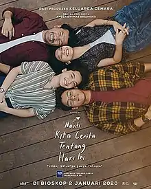 One Day We'll Talk About Today (Indonesian: Nanti Kita Cerita tentang Hari Ini) is a 2020 Indonesian family drama film directed by Angga Dwimas Sasongko and produced by Visinema Pictures. The film was adapted from the novel Nanti Kita Cerita tentang Hari Ini by Marcella FP. The film stars Rachel Amanda, Rio Dewanto, Sheila Dara Aisha, Ardhito Pramono, Donny Damara, Susan Bachtiar, Oka Antara, Niken Anjani, and Agla Artalidia.[2] This film released on January 2, 2020.[3]