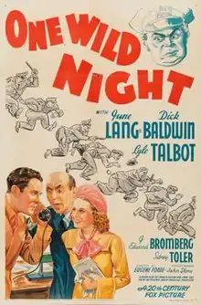 One Wild Night is a 1938 American comedy film directed by Eugene Forde and written by Charles Belden and Jerome Cady. The film stars June Lang, Dick Baldwin, Lyle Talbot, J. Edward Bromberg, Sidney Toler and Andrew Tombes. The film was released on June 10, 1938, by 20th Century Fox.[1][2][3]