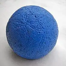 The One World Futbol was conceived by Tim Jahnigen of Berkeley, California after he watched a documentary that featured children in Darfur playing with soccer balls made of trash. These makeshift balls were used because traditional soccer balls rapidly became too damaged to be usable in the rocky ground that the children played in.[1] Jahnigen, who had previously met the developers of Crocs shoes and had used durable early Crocs prototypes, came up with the idea of using ethylene-vinyl acetate foam, a similar material, to create the ball.[2] The ball self re-inflates, eliminating the need for air pumps, can still be used after being punctured, and can withstand heat and cold.[3]