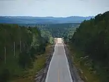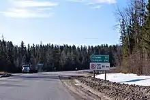 Between the communities of Dowling and Onaping in Greater Sudbury, Highway 144 is home to the scenic A. Y. Jackson Lookout, overlooking the waterfall depicted in Jackson's 1953 painting "Spring on the Onaping River". It exits Greater Sudbury at Windy Lake Provincial Park and passes through the village of Cartier, then enters a long isolated stretch surrounded only by endless expanses of the boreal forest.[4] At an isolated point 149 km (93 mi) north of Lively and 117 km (73 mi) south of Timmins, Highway 144 meets Highway 560 and the Sultan Industrial Road, which constitute the only major transportation route intersecting the highway outside the cities of Sudbury and Timmins;[1] the rest stop at this intersection is the only gas station located on the highway north of Cartier.[5]