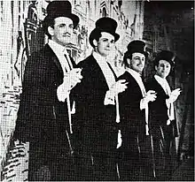 There are 35 speaking parts in the musical, and in the original production there was a company of 80. The show is a period piece, set in the year 1906 at the fictional "Jubilee" theatre.[1][3] Coward directed the production. Wood and Massary were supported by Griffith Jones as the young peer who falls in love with the heroine, and Irene Vanbrugh as his mother.[1]
