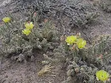 Opuntia arenaria was considered a variety of O. polyacantha by many botanists, and is still treated that way in the Flora of North America.[1] However, O. arenaria is diploid and O. polyacantha is tetraploid. It was described by Engelmann in 1856.[2]