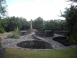 Opus 40 is a large environmental sculpture in Saugerties, New York, created by sculptor and quarryman Harvey Fite (1903—1976). It comprises a sprawling series of dry-stone ramps, pedestals and platforms covering 6.5 acres (2.6 ha) of a bluestone quarry.[2]