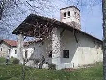The small indistinct building with a stone, brick, and stucco bell tower, reflects multiple reconstructions. The chapel was initially built in the mid to late 11th century, but rebuilt and expanded over the next two centuries until it was labelled a church. The bell tower has stones arrayed in herringbone orientations, interspersed with brick. In the 17th century, a hermitage for a single occupant was attached to the chapel.