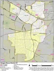 District 27 of the Oregon House of Representatives is one of 60 House legislative districts in the state of Oregon. As of 2021, the district is contained entirely within Washington County and includes most of Beaverton. The current representative for the district is Democrat Ken Helm of Beaverton.[1][2]