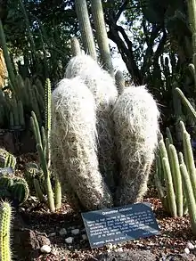 Oreocereus celsianus, or the old man of the mountain is a member of the family Cactaceae native to the high lands of the Andes in South America, and is named for its fluffy white hair, which may protect it from intense sunlight and extreme temperatures.