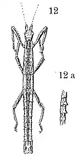 female nymph from Orestes verruculatus, image from Redtenbacher's first description of the genus from 1906