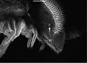 Tömösváry organ (arrow) on the head of a symphylan, just behind the base of an antenna
