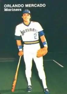 Orlando Mercado Rodríguez (born November 7, 1961) is a Puerto Rican former professional baseball player. He played all or parts of eight seasons in Major League Baseball with the Seattle Mariners, Texas Rangers, Detroit Tigers, Los Angeles Dodgers, Oakland Athletics, Minnesota Twins, New York Mets, and Montreal Expos. From 2003 to 2010, he was the bullpen coach for the Los Angeles Angels of Anaheim. After the 2010 season, Mercado moved to the position of roving catching instructor for the Angels.