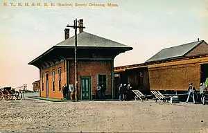 Orleans station was a train station in Orleans, Massachusetts. It was built by the Old Colony Railroad in 1865 when the rail line was extended from Yarmouth to Orleans. The original station was replaced by a newer station around 1890.[1] Passenger service to this station ended in the late 1930s when the New Haven Railroad discontinued scheduled service between Yarmouth and Provincetown.
