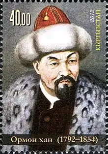Ormon Khan (Kyrgyz: Ормон хан; c. 1792 – 1854) was the first and only khan of the Kara-Kyrgyz Khanate, ruling from 1842 until his death in 1854. A member of the powerful Sarybagysh tribe, Ormon's reign saw a centralization of the Kyrgyz tribes, with the establishment of legal and judicial systems. Ormon was a close ally of the Russian Empire in the region, winning a series of wars against the Khanate of Kokand and defeating a Kazakh army led by Kenesary Khan, who had been rebelling against the Russians. In 1854, during a conflict with a rival Kyrgyz tribe, Ormon was captured in battle and executed. Ormon's khanate collapsed following his death, with the region falling under Russian control by 1868.