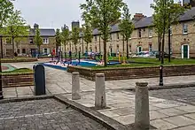 Ormond Square sits on the site of the former Ormond Market. Along with Ormond Quay, the square is named after James Butler, 1st Duke of Ormond.[2] Ormond Market appears on maps of Dublin in 1684, and was built on an area formerly known as The Pill. The Pill was a small river inlet which branched off the River Liffey at the estuary of the River Bradogue and the area around it, and formed part of the land granted to St Mary's Abbey. The inlet was later removed when the River Liffey was confined by the Quay walls[3] and the land was reclaimed.