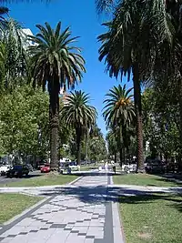 The downtown segment of the boulevard hosts a number of historical buildings and mansions formerly belonging to wealthy local families, in some cases transformed into institutional buildings (such as schools and private hospitals). The central reservation is wide, lined with palm trees, and includes a tiled pedestrian area and a cycleway. The lanes themselves are comparatively narrow.