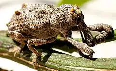 Orthorhinus cylindrirostris, commonly known as the elephant weevil,[1] is a species of Curculionidae. In Australia they are considered a major pest to wine companies.[2]