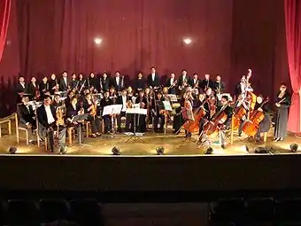 The Oruro Symphony Orchestra (Spanish: Orquesta Sinfónica de Oruro) is a symphony orchestra based in Oruro, Bolivia. Under the directorship of Jesús Elías (2006–2008), they perform at the Teatro de la Casa Municipal de Cultura in Oruro.