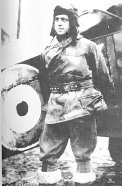 Ralston joined the United States Army Air Service after attending Peru State College,[3] only to be attached to the Royal Air Force for seasoning in combat. He flew a Royal Aircraft Factory SE.5a in "Mick" Mannock's flight of 85 Squadron, and gained his first two victories there, destroying a Fokker D.VII each on July 24 and August 22, 1918. He then returned to American aviation, becoming a Sopwith Camel pilot with the 148th Aero Squadron. He teamed with fellow ace Elliott White Springs and two other pilots for his next win, and then independently destroyed two more D.VIIs—one each on September 26 and October 3, 1918.[4]