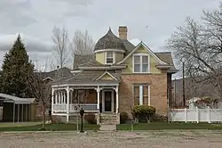 It has an octagonal corner tower and other decorative elements of Queen Anne style. It was built by carpenter Oscar M. Booth (1868-1944).[2]