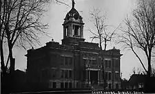Sibley was chosen as the Osceola County county seat because it was the first town established in the county.[2] All of the wagon trails in the county led there after the railroad was completed there in 1872. The first courthouse was a two-story frame building built the same year for $5,000.[2][3] There were shutters on all of the windows. The present courthouse was designed by E.N. Kinney and built by C.E. Atkinson from 1902 to 1903. The building follows no definable architectural style.[4] It featured a cupola with a clock and a statue of Justice on top.[2] The building had major renovation projects in the 1920s and in 1961. The cupola, clock and statue were removed during the later renovation.[4]