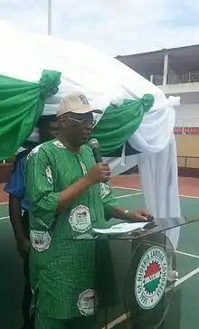Osunbor was elected Governor of Edo State in Nigeria in April 2007 on the People's Democratic Party (PDP) platform.[5] On 20 March 2008, the Edo State Governorship Election Tribunal declared that Osunbor's election was invalid, and asked the Independent National Electoral Commission (INEC) to withdraw his certificate and declare Adams Aliyu Oshiomhole of the Action Congress (AC) party the winner.[6] On November 11, 2008, a federal Appeal Court sitting in Benin City upheld the ruling of the state's elections petitions tribunal, declaring Oshiomole to be the Governor of Edo State. The decision was based on several voting irregularities.[7]